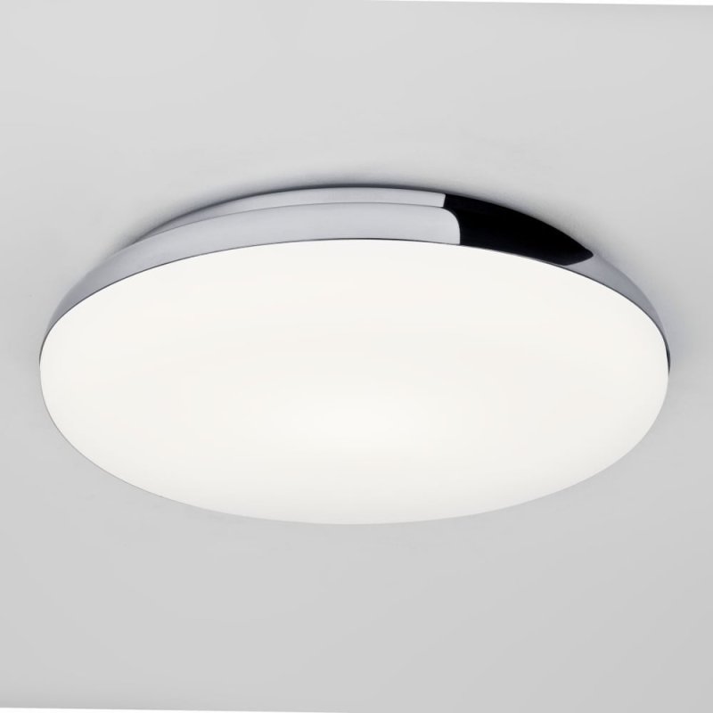 ASTRO ALTEA 1133002 circular ceiling light for the bathroom.ᅠ This light fitting features white opal glass and is trimmed with polished chrome.ᅠ Suitable for use in bathroom zones 1 and 2. SIZE Diameter: 300mm Projection: 80mm FEATURES Ceiling light 1 bulb (sold separately) Polished chrome finish White opal glass Suitable for dimming Double insulated IP44 – suitable for use in bathroom zones 1 and 2 BULBS Takes 1x 100w (max) ES/E27 GLS lamp (not included) ORDER CODE 1133002